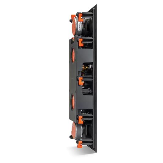 For next level home theater the Studio 6 Theater utilizes quad 5.25" (130mm) Polyplas® woofers and a 1" (25mm) Compression Driver with High-Definition Imaging (HDI™) waveguide to deliver home theater at its best. The Dog Leg mounting system allows for easy installation and the zero bezel grilles make the Studio 6 Theater visually discrete so they blend into the walls seamlessly.